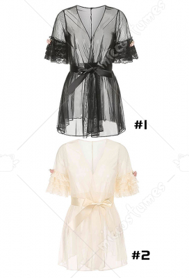 Women Sexy Hollow Out Lace Gown Flower Decorated Lace-up Robe