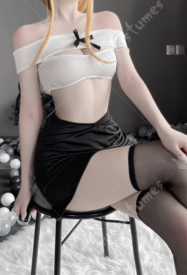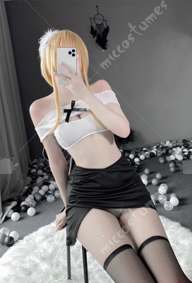 Women Sexy Hollowed Maid Style Backless Uniform Costume Outfit with Apron