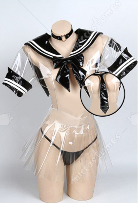 Women Sexy Transculent Bow Decorated JK Uniform Costume Outfit