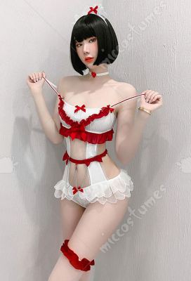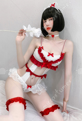 Women Sweet Bride Wedding Sweet Bow Decorated Top and Skirt Lingerie Set