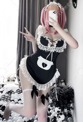 Women Sweet Maid Style Cute Lace Decorated Lingerie Set