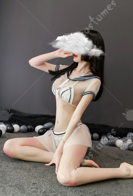 Women Sweet Transculent Backless Salior Uniform Costume Outfit