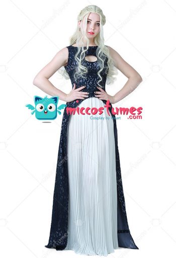 Game of Thrones A Song of Ice And Fire Daenerys Targaryen Dark Navy Blue and White Dress Cosplay Gown Costume
