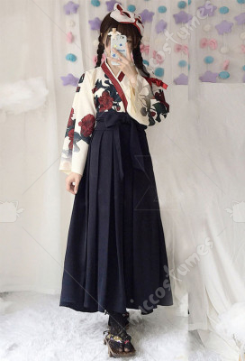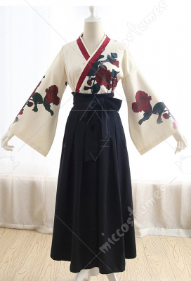 Camellia Love Improved Kimono Poppy Heng Feng Retro Suit Printed Bathrobe Black Skirt