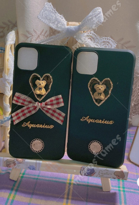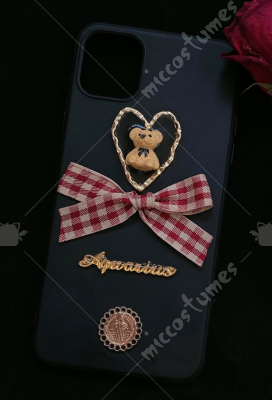 Gothic Dark Lolita Vintage Bear Red Plaid Bow Decorated Black Phone Case Accessory for iPhone