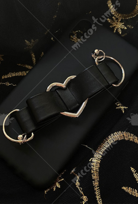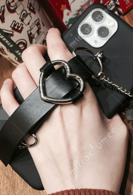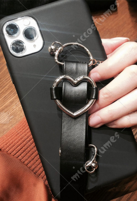 Gothic Dark Lolita Punk Black Soft Silicone Phone Case Accessory for iPhone with Wrist Hang Heart Decorated Strap