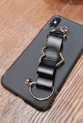 Gothic Dark Lolita Punk Bow Style Black Soft Silicone Phone Case Accessory for iPhone with Wrist Hang Heart Decorated Strap