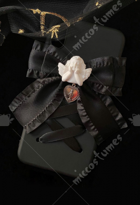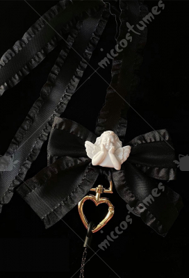 Gothic Dark Lolita Bow Ribbon Decorated Angel Pendant Black Halter Phone Strap Accessory for iPhone