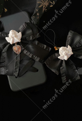 Gothic Dark Lolita Bow Ribbon Decorated Angel Pendant Black Phone Chain Accessory for iPhone