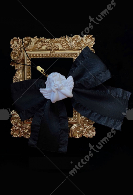 Gothic Dark Lolita Bow Ribbon-Decorated Angel Pendant Black Soft Glue Phone Case Customized Accessory for iPhone