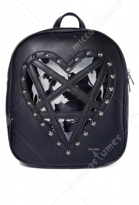 Dark Gothic Punk Harajuku Style Backpack School Bag Transparent Heart Pentagram Design Faux Leather Bag Rivets Decoration Book Bag Knapsack