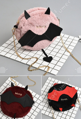 Cute Japanese Style Mini Bat Bag Dark Halloween Little Devil with Wings Gothic Lolita Metal Chain Shoulder Bag