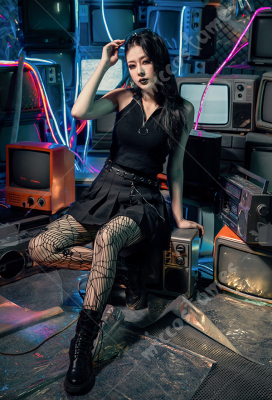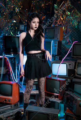 Dark Gothic Costume Japanese Harajuku style Female High Collar Zipper-desinged Short Top For Spring And Summer