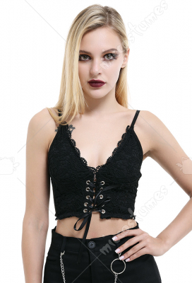 Dark Gothic Cute Lace Top Cross Straps Short Vest