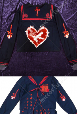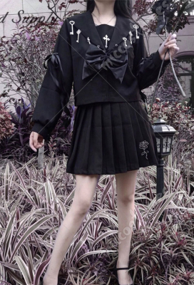 Dark Gothic Gun and Rose Thorns and Heart Costumes Gothic JK Uniform Skirt Suit