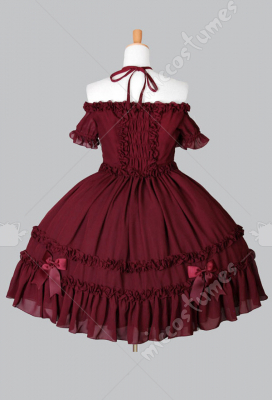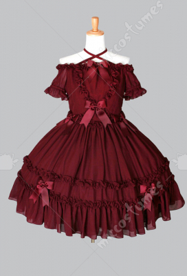 Dark Gothic Off the Shoulder Halter Neck Dress Wasp-waisted Princess Lolita Court Dress