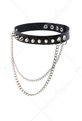 Punk Collar with Clavicle Necklace Metal Gothic Cone Choker Halloween Costume Collar