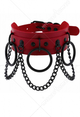 Punk PU Leather Collar with Necklace Rock n' Roll Choker with O Shape Ring Halloween Costume Collar
