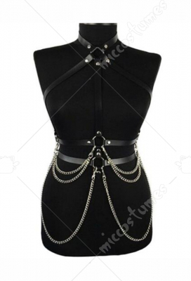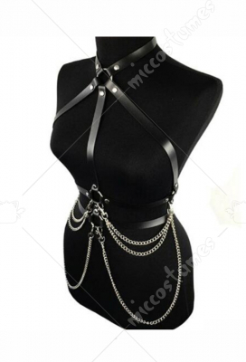 Punk Gothic Dark Style Women Body Harness Belt Faux Leather Waist Chain Jewelry Fashion Cross Waist Accessory with Metal Chain Pendant
