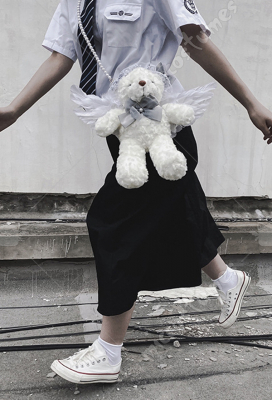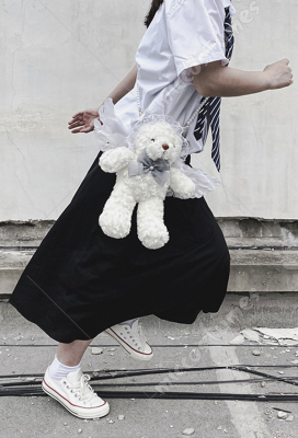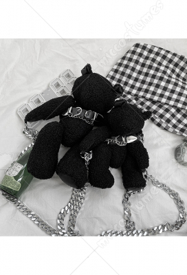 Cute Fluffy Girls Animal Shape Bag Dark Style Teddy Bear Handbag Fashion Beads Chain Crossbody Bag Zip Up Shoulder Bag