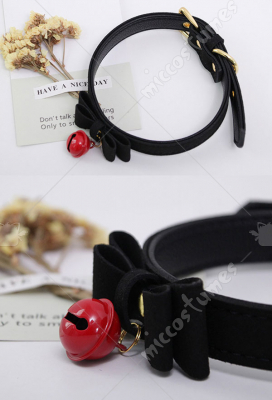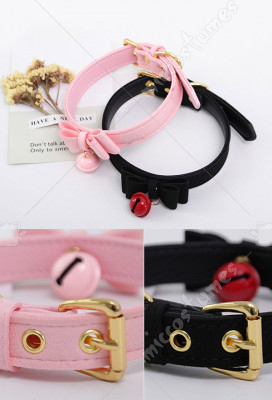 Cute Lolita PU Leather Adult Role Play Accessory Bowknot Bell Choker Collar Necklace