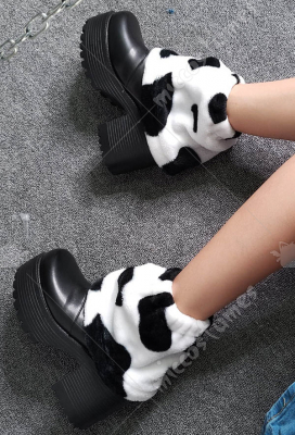 Girls Cute Harajuku Style Milk Cow Pattern Fluffy Short Leg Sleeves Accessory Outfit