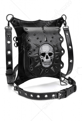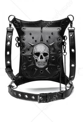 Gear Duke Woman Gothic Steampunk Multiple-Way Black Skeleton Chain Strapped Zipper Messenger Bag Outdoor Motorcycle Style Bag Crossbody Bag Cosplay Accessory