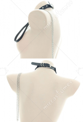 Girls Harajuku Style Punk Leather Collar Choker PU Neck Ring with Chain Accessory Adjustable Maid Cosplay Accessory