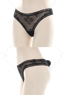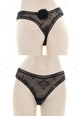 Girls Japanese Style Sexy Self-Transparent Black Lace Thong Underwear Briefs Outfit Cosplay Accessory with Rabbit Tail Decoration