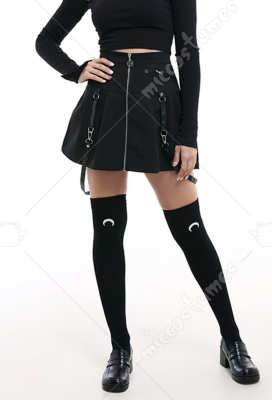 Girls Gothic Punk Dark Style Women Pentagram Zipper Strap Pendant Mini Skirt High Waist Plaid A Line Zip Up Short Skirt