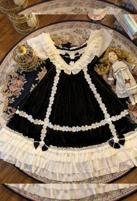 Gothic Lolita Retro Dress Short Sleeves Vintage Dress High Waist Layered Dress