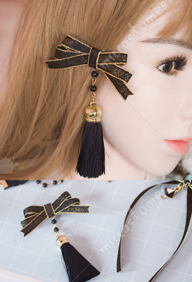 Sweet Lolita Dark Style Black Hair Clip Cute Bowknot Hairpin Tassel Beads Chain Pendant Elegant Headdress Hair Accessory