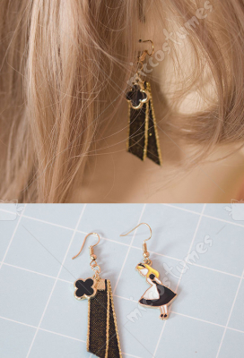 Sweet Lolita Dark Style Black Shine Ribbon Cross Pendant Earrings Cute Alice Figure Ear Drop Gold Asymmetric Piercing Dangle Earring