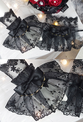 Sweet Lolita Lace Bowknot Beads Cluster Bridal Wrist Cuffs Gothic Retro Elegant Wristband Black Floral Butterfly Wrist Accessory fro Wedding Parties