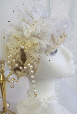 Sweet Lolita Retro Lace Maiden Headband Bowknot Butterfly Beads Cluster Star Sequins Hair Accessory Hair Band Elegant Vintage Bridal Headdress