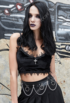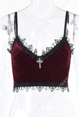 Woman Gothic Cool Dark Style Velvet Floral Lace Decorated Breast Wrap Lingerie Top Costume Outfit for Summer