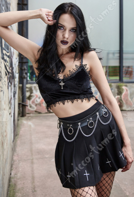 Woman Gothic Cool Dark Style Skellington Characters Printed Pattern Navel Vest Top Costume Outfit