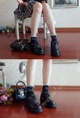 Woman Sweet Harajuku College Style Flower Decoration Lace Up Black White Round Toe Thick Heel Shoes Platform Shoes for Spring