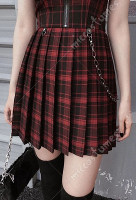 Women Dark Punk Red Plaid Slip Dress Rock Girl Gothic A Line Pleated Dress