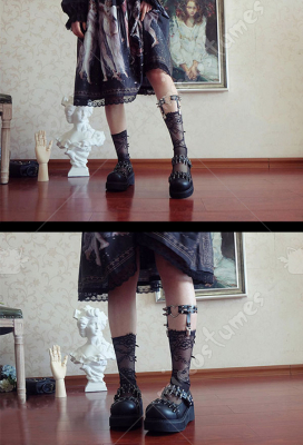Dark Gothic Punk Knee High Socks Hollow Fishnet Top Mid Calf Length Japanese Style JK Accessory Socks