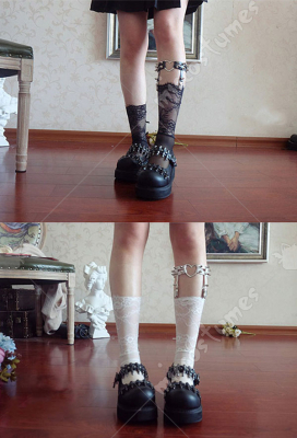 Dark Half Knee High Stockings With Love shaped Belt Buckle Clip Leg Harness Rivet Lace Half Knee High Stockings
