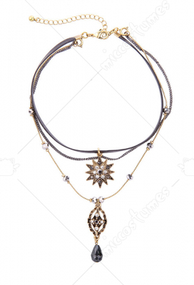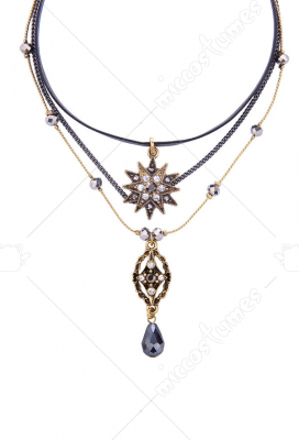 Dark Gothic Retro Multi Strand Crystal Star Pendant Necklace Vintage European Baroque Style Hollow Choker Diamond Neck Accessory for Woman