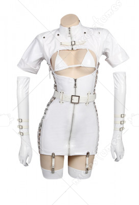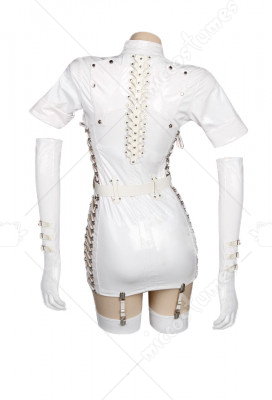 Dark Nurse White Costume Dress Skin Tight Faux Leather Zip Up Sexy Bondage Suit with Nurses Cap for Halloween