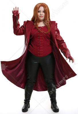 Plus Size Super Heroine Wanda Maximoff Scarlet Witch Outfit Curvy Cosplay Costume Coat Inspired by Avengers: Infinity War Make to Order with Gloves