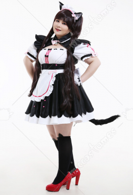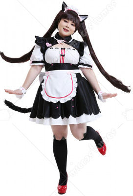 Plus Size Nekopara Chocola Maid Dress Outfit Curvy Cosplay Costume with Cat Ears and Lace Hairband