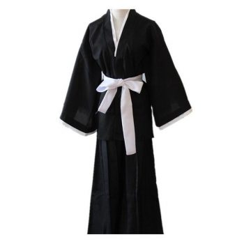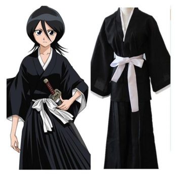 Anime Bleach Kuchiki Rukia Cosplay Costume Japanese Black Kimono Outfit