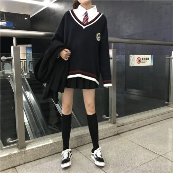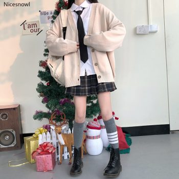 Japanese fashion College jk Loose V-neck Cardigan 2020 New Sweater Female Outer Wear JK Sweater Coat japanese school uniform
