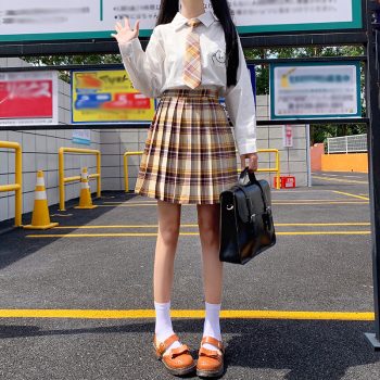 Japanese Girls Spring Autumn Long Sleeve White Shirt and High Waist Plaid Pleated Skirts Women JK School Uniform Students Cloths