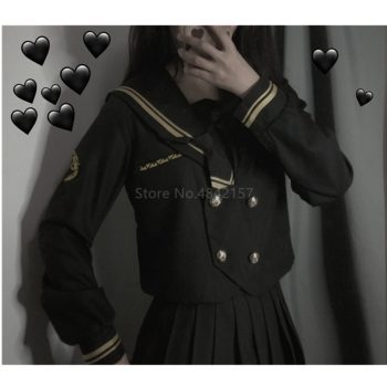 Japanese Bad Girls School Uniform Basic Pleated Skirt Excellent Students Super-long College Black Sailor Suits Mori Lolita Shoes