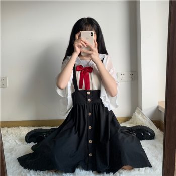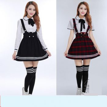 Japanese College JK Uniforms Long-Sleeved Shirt Pleated Suspender Dress Two-Piece Suit Female school girl uniform